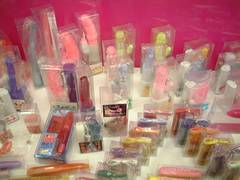 すごいでしょっ?ピンクやオレンジ、ブルーにイエロー。なんてカラフルなこと!これ、みんなグッズなのヨ。こんなにたくさん並べられて、さて、どれから見ようかしら?