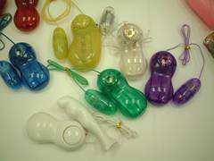次に、イエローのローターのまわりに並んでいるグリーンやパープルのローターをチェック!これもコントローラー部分の形がなんだか丸っこくてかわいいわよね。この丸みをおびたデザインは、女性のボディをイメージした形なんだって!スケルトンカラーで、なんだかパソコンのマウスみたいっ!!