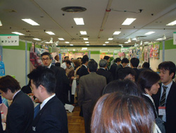 様々なメーカーさんがスーツ姿でお出迎えしてくれます。医療衛生用品という事で薬店に売っているような商品が所狭しと並んである中を歩いていると、メーカーの人間か会場に訪問した企業さんかがわからなくなってきますね、皆さんスーツ姿なので・・(^−^;)