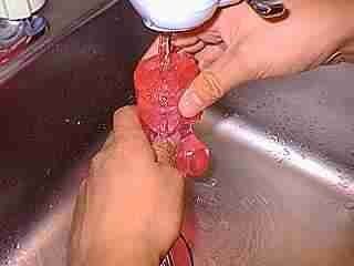 | 使用後は本体を水で洗いましょう。ローションなどの液体を良く洗浄しないと異臭の原因になります。 ヌルヌル感が無くなれば洗浄完了です。 |
