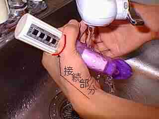 | 使用後は本体のみ水で洗っても平気ですが、コントローラーに水が入らないようにして下さい。 接続部分から水が侵入すると内部でショートし作動不能に陥りやすくなります。 |
