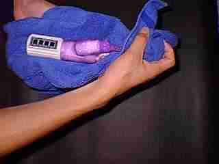 | ■リモコンバイブの場合 同様にコード部分に水が掛からないようにして、コードが出ている部分を上側にして洗浄してください。 |